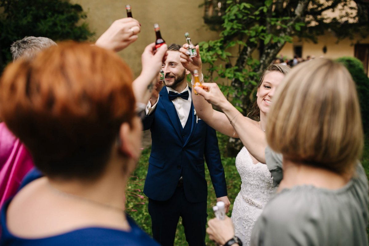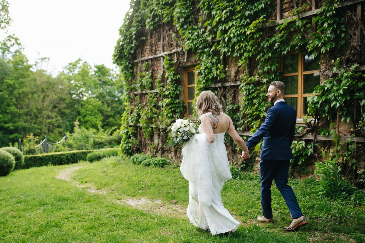 Das passt auf alle zum grünen Herz der Steiermark und dem Hochzeitsfotograf in der Steiermark geht da natürlich auch ein Herz auf. Am Weg zum Schloss haben wir auch gleich Katinka und Kevin getroffen, die schon aufgeregt und voller Vorfreude waren. Für den großen Tag fertig gemacht, haben sie sich dann in getrennten Zimmern, da gibt es ja genug tolle Räumlichkeiten in der Hochzeitslocation Schloss Obermayerhofen.