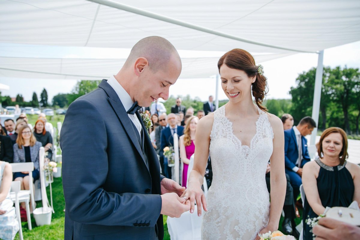 Voller Glücksgefühle war dann das Paarshooting der beiden, bevor es zurück zu den Gästen und den ersten Ansprachen gegangen ist.